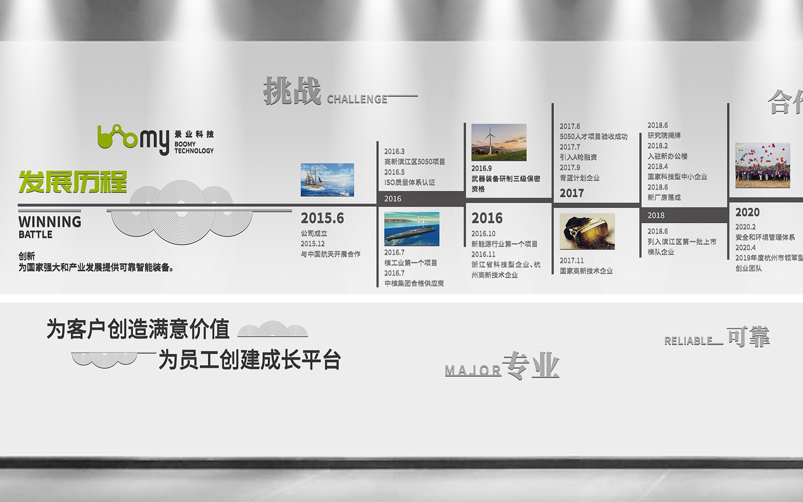 景業(yè)只能科技文化墻與榮譽(yù)墻的設(shè)計經(jīng)過石特廣告的策劃,讓原本光禿禿的墻壁有了展示公司實(shí)力的窗口