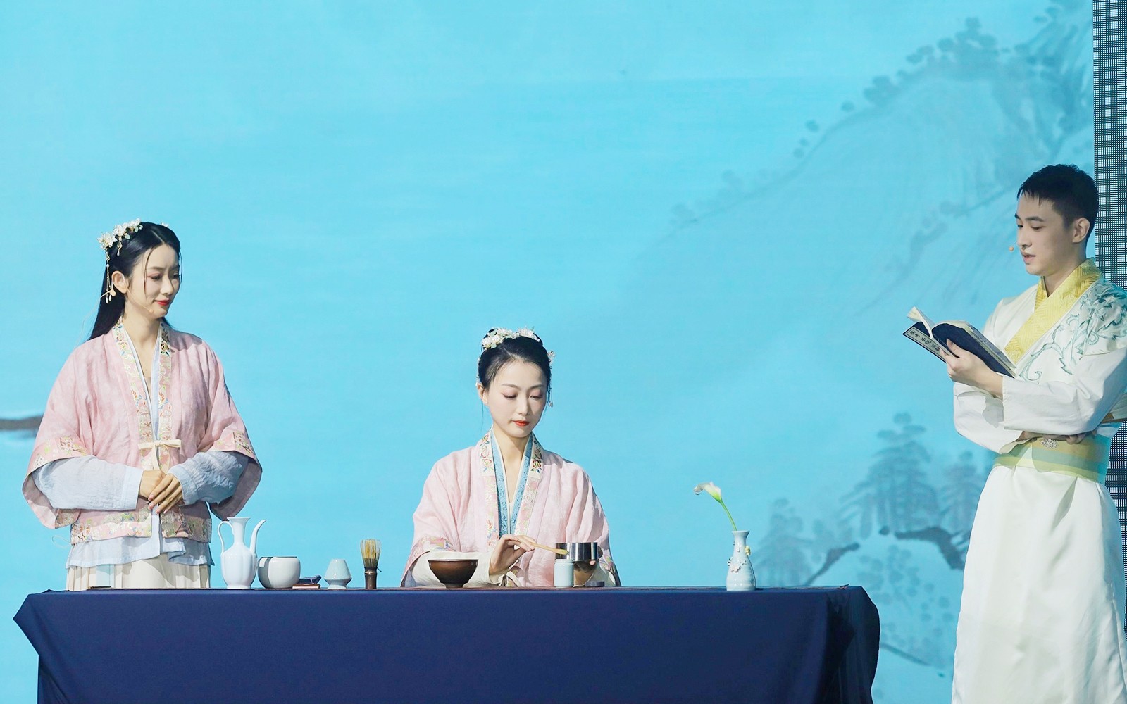 匠心傳承宋韻經(jīng)典,引吭歌頌祖國河山,最后全員合唱致敬祖國。