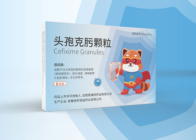 合肥恩瑞特藥業頭孢克肟顆粒兒童用藥包裝設計