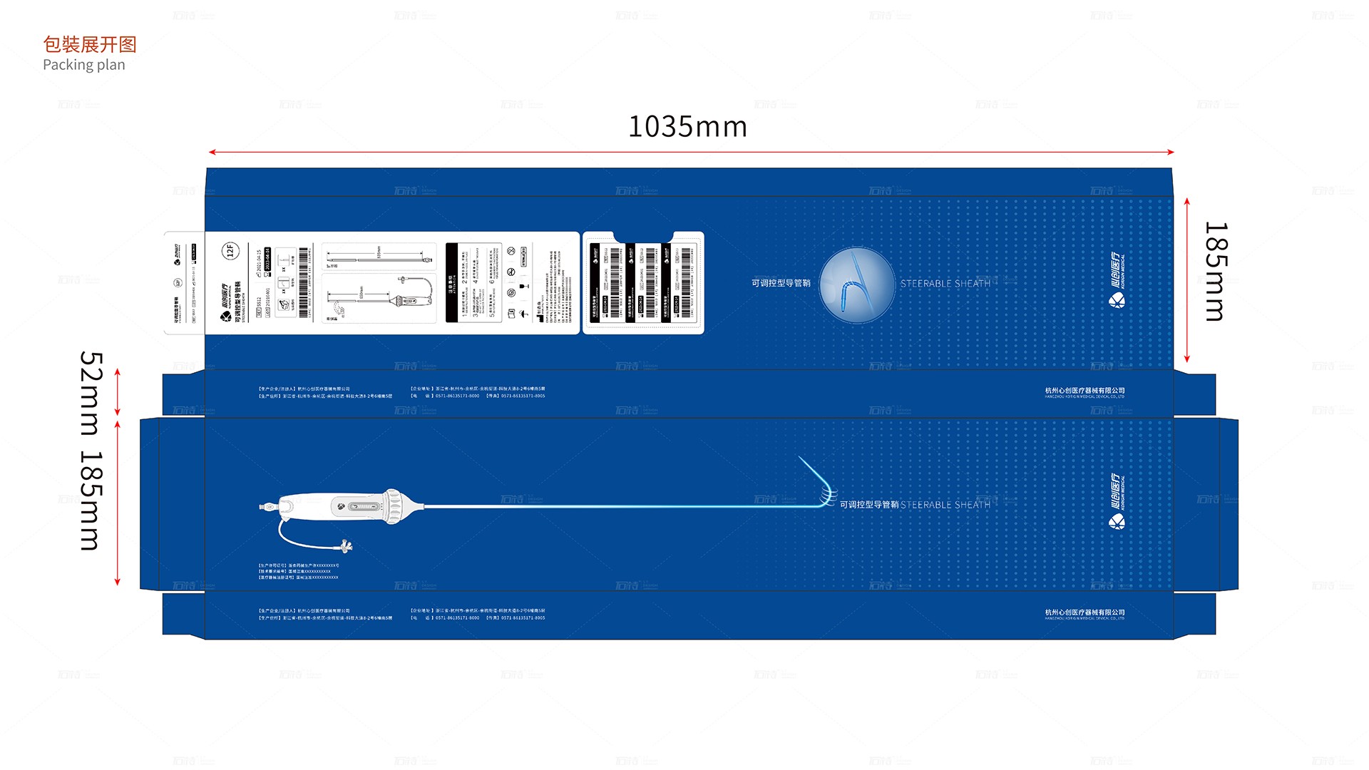 可調(diào)控型導管鞘產(chǎn)品包裝設計之初有很多難點,比如產(chǎn)品體積大,產(chǎn)品實物外觀不好展示體現(xiàn),產(chǎn)品長包裝外盒就需很長,要考慮到打開,運輸及外包上的畫面及主要信息的體現(xiàn)方式和順序位置等;石特團隊再經(jīng)過詳細調(diào)研和了解后,很好的完成了該方案的設計,獲得了客戶高度認可與贊賞。