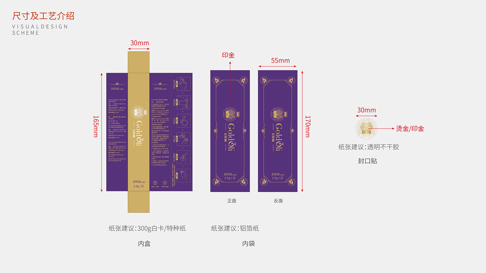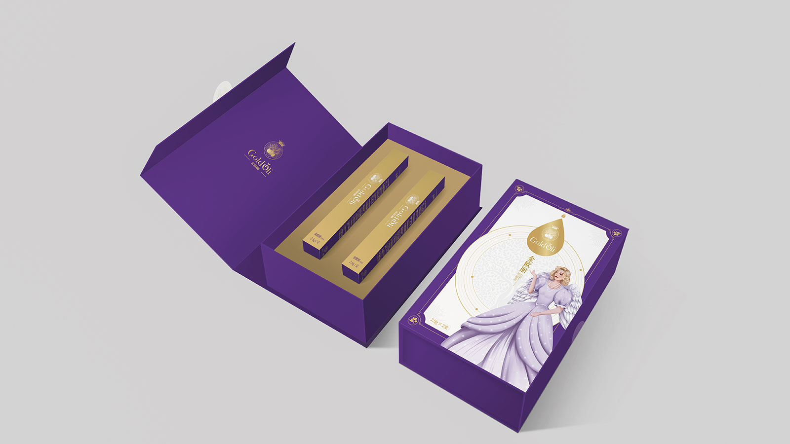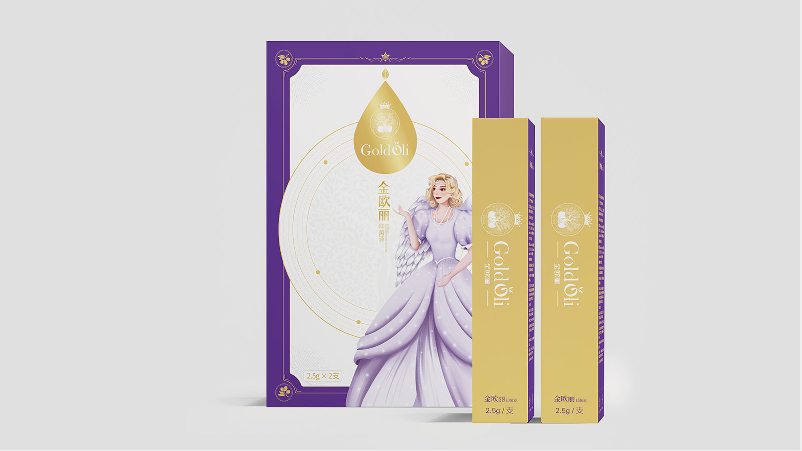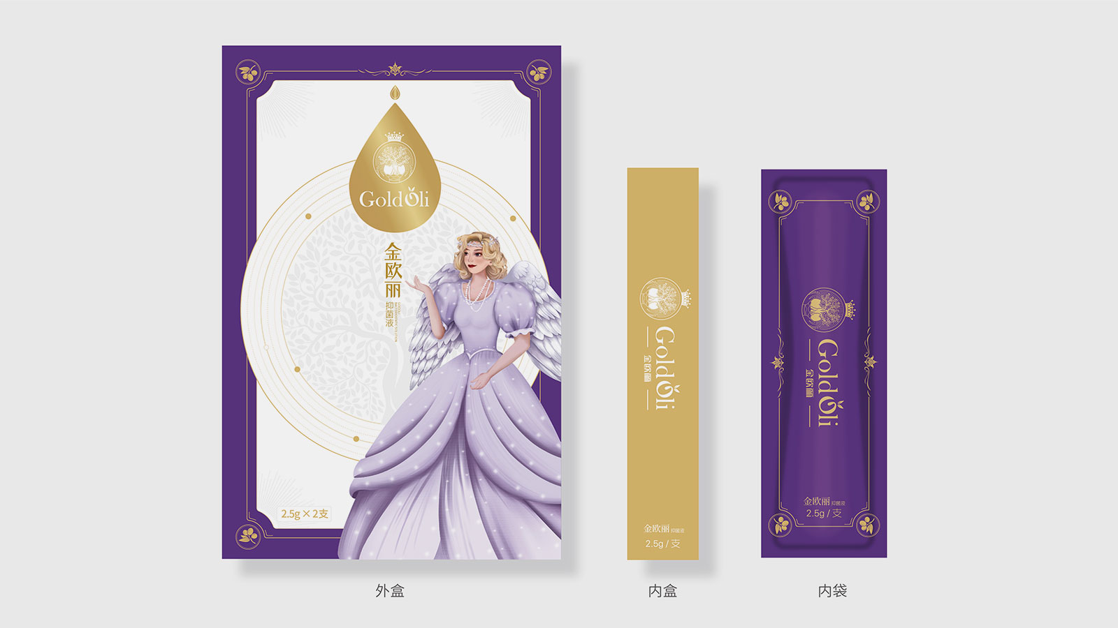 石特在創(chuàng)意思考之前,針對品牌進行全維調(diào)研與洞察,對現(xiàn)有包裝進行全面診斷分析,提煉出產(chǎn)品核心主張——每個女人都是自己的公主,并以此為發(fā)散點,以公主的IP人物形象進行畫面創(chuàng)作,同時包裝畫面突出風(fēng)格鮮明的西班牙王室元素,加強產(chǎn)源地背書及產(chǎn)品核心賣點凝練。包裝運用女性紫與尊貴金的色彩進行渲染,時尚醒目,記憶點十足。細細品味,包裝處處體現(xiàn)尊貴與呵護,整體來看,包裝解決了金歐麗品牌與受眾利益訴求之間的溝通不順的問題,以市場化、差異化的表現(xiàn)手法將品牌展現(xiàn)的淋漓盡致,獲得客戶一致好評!