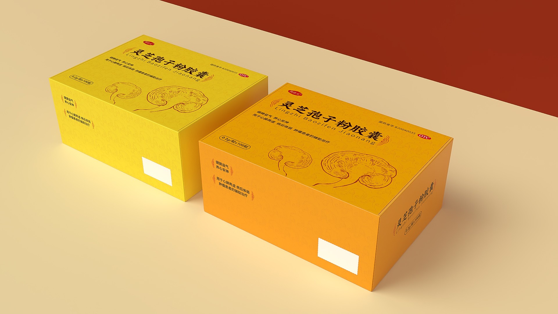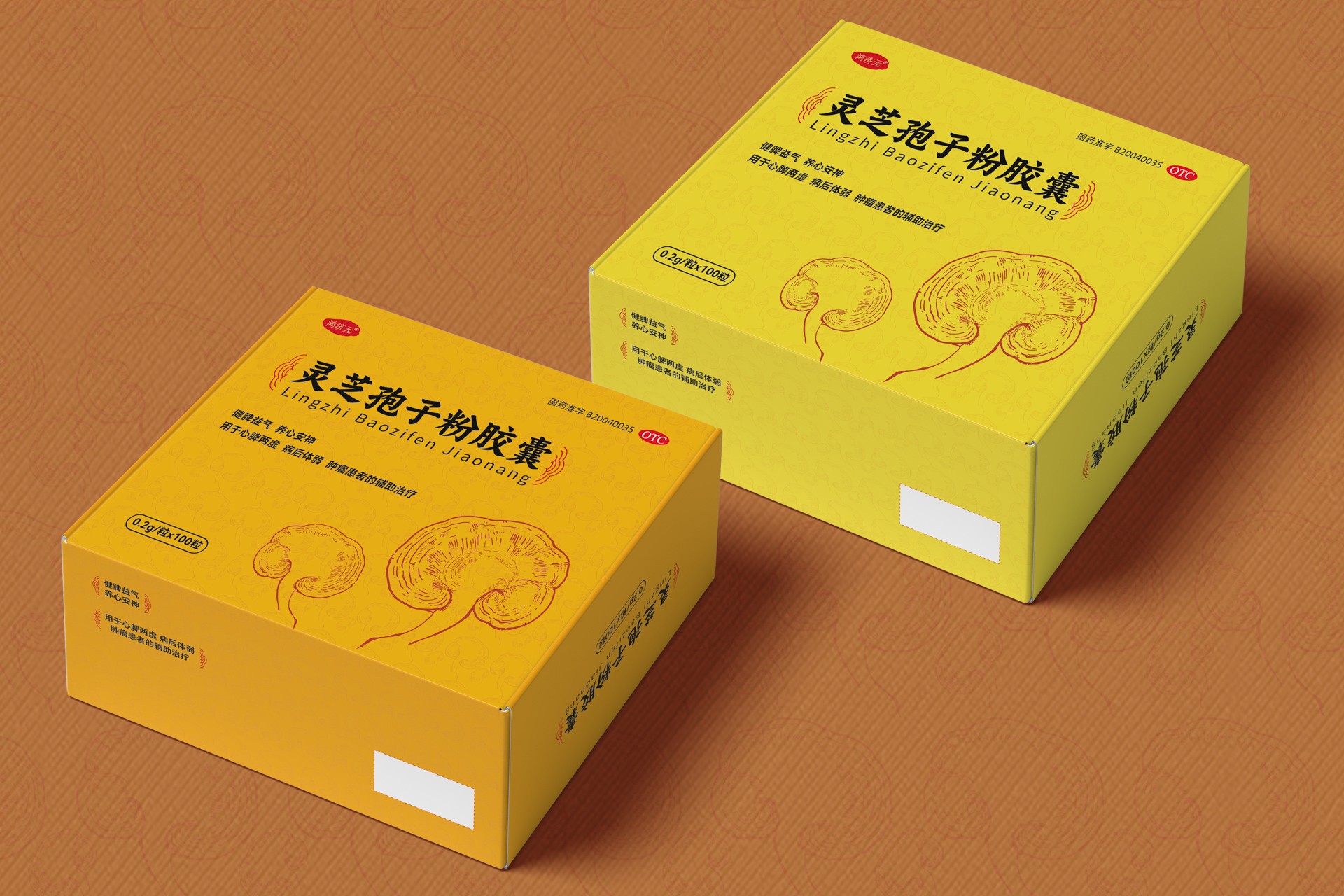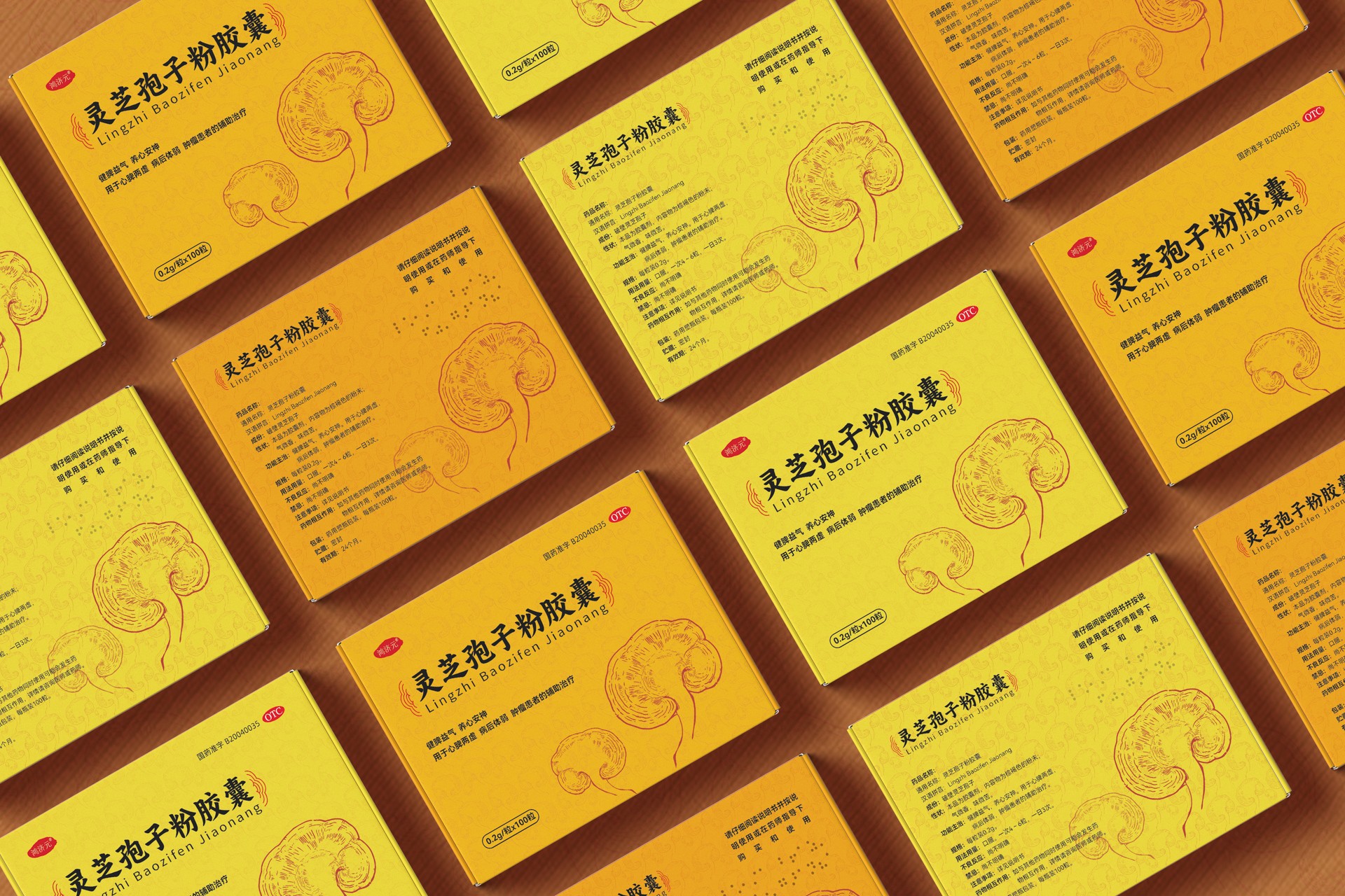 這款靈芝孢子粉膠囊的禮盒設計,充分融合了現代審美與傳統文化元素,既彰顯了產品的專業品質,又凸顯了禮盒的高端定位。
